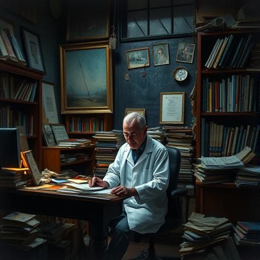 As soon as I entered the doctor’s room I spotted my journal open on his desk. The rest of the room is etched into my memory in technicolour. There was a jumble of books and papers, some comfy chairs, walls full of paintings and an elderly man peering at me over his gold rimmed spectacles.
